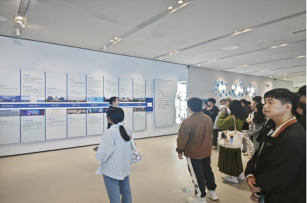 在展览馆工作人员的专业引导下,学生们依次参观了序厅、历史文化厅、城乡总体规划厅、重点区域规划厅、生态环境保护规划厅等多个展区。各展区通过高清LED 屏、立体沙盘模型互动查询系统等多元化展示手段,全方位、多角度地呈现了贵阳市从过去到现在的城乡发展变迁,以及未来城乡规划的宏伟蓝图。在历史文化厅,学生们通过老照片、实物展陈和多媒体演示,深入了解了贵阳市独特的地域文化、历史风貌以及城市发展的脉络,为后续理解现代城乡规划与历史文化保护的结合奠定了基础;在城乡总体规划厅,1:3000 的贵阳市域总体规划沙盘震撼亮相,清晰展示了贵阳市 “一核三翼” 的空间结构、交通网络布局、产业园区分布等核心规划内容,工作人员详细讲解了规划编制的依据、目标和实施路径,让学生们直观地掌握了贵阳市城乡规划的整体概况。