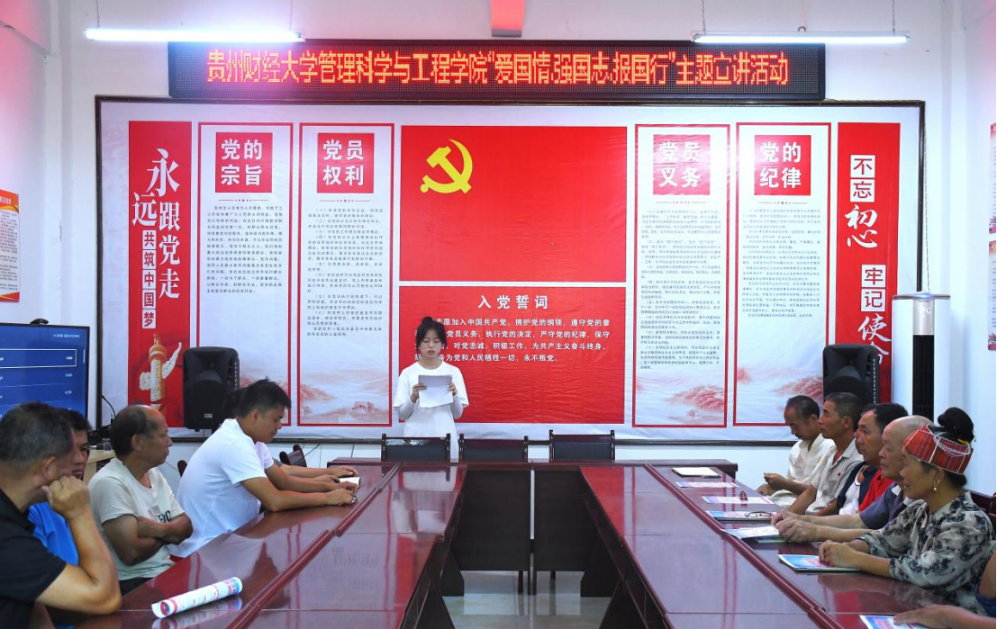 为深入学习贯彻党的二十大精神,凝聚乡村振兴奋进力量,2025年7月10日,402cc永利官网“明德立心,力行铸魂”理论宣讲团赴台江县良田村开展主题宣讲活动,本次活动以“爱国情,强国志,报国行”为主题,通过理论宣讲的方式,推动党的二十大精神在基层落地生根。