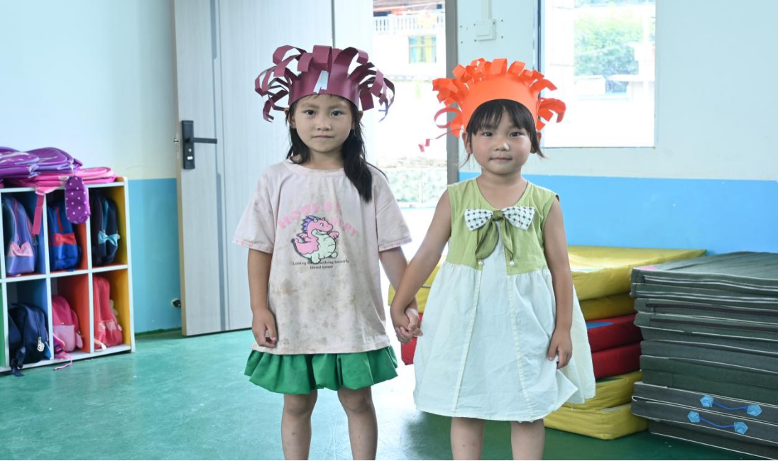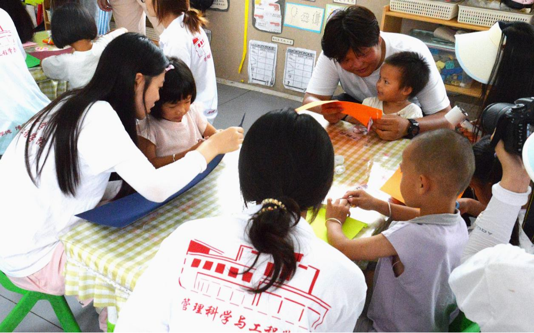 为拉近与小朋友的距离,实践团还开展了趣味手工小游戏——小小理发师。游戏开始前,实践团部分成员讲解怎么使用彩纸进行剪裁和制作,其他成员则一对一耐心地带领小朋友一起动手制作,并鼓励他们发挥想象力。小朋友们全神贯注投入到制作过程中,并最终戴上了自己独特的“理发作品”。
