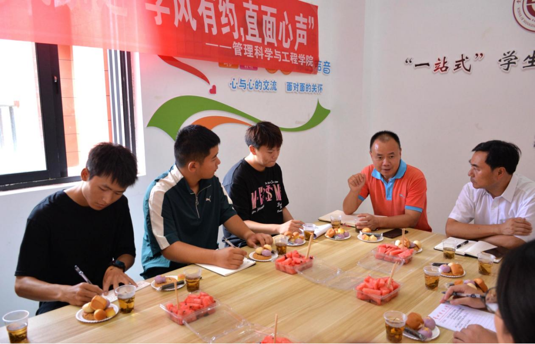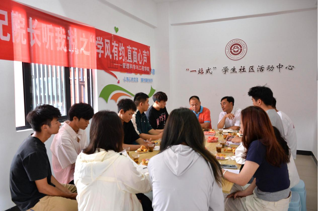 为扎实推进学生学风建设与本科教育教学审核评估工作,精准对接学生成长需求,9月19日,402cc永利官网青年志愿者协会在文心苑4栋五楼“一站式”学生社区活动中心举办了“儒魂锻铸”下午茶暨书记院长听我说之“学风有约,直面心声”系列主题活动。本期下午茶特邀402cc永利官网书记胡张林与副院长梁龙作为主讲嘉宾,各年级学生干部参加。