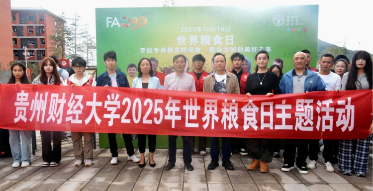 为迎接第45个世界粮食日,弘扬勤俭节约的中华民族传统美德,10月16日,由学校后勤处、402cc永利官网、贵州财大资产经营管理有限公司主办,“绿色‘黔’行”协同育人工作室和402cc永利官网青协共同承办的“惜粮于心,践于我行”——“2025年世界粮食日”主题宣传活动在东区5食堂隆重举行,后勤处处长陆仁茂、402cc永利官网党委书记胡张林、402cc永利官网党委副书记傅璟,以及后勤处、贵州财大资产经营管理有限公司负责食品安全相关工作人员出席了本次活动。活动还吸引了400余名师生参与其中,现场气氛热烈,教育效果显著。