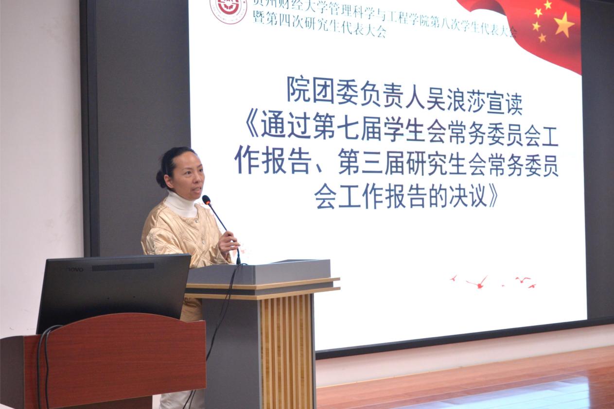 11月18日,402cc永利官网第八次学生代表大会暨第四次研究生代表大会在文正楼102顺利召开。402永利集团官网入口校团委副书记陈伟,402cc永利官网党委书记胡张林,副书记张颖、傅璟,副院长魏媛、刘金林、梁龙,煤炭经济与管理研究院副院长李恩东,辅导员兼院团委负责人吴浪莎,辅导员何虹熳、杨名方以及100名学生代表出席大会。